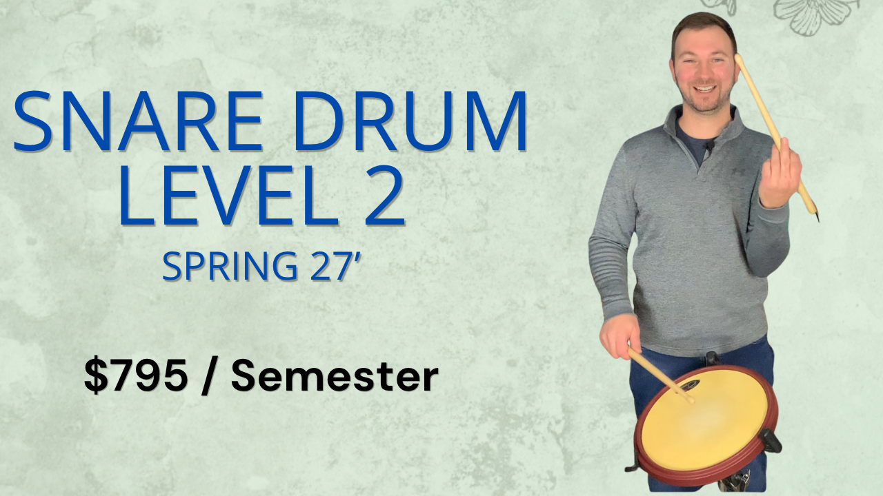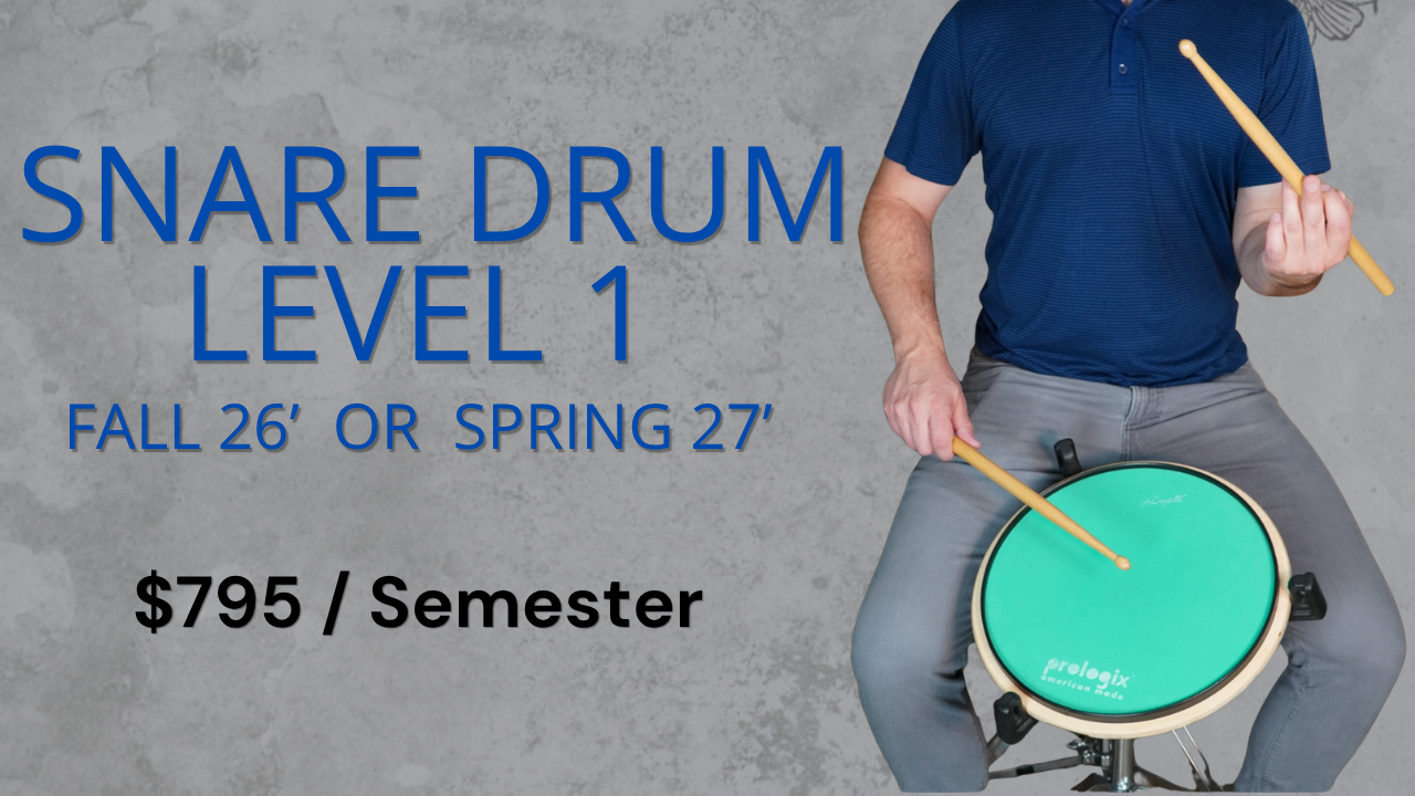 Learn the fundamental of snare drumming including technique, stick control, speed development and how to play a drum roll. This course is perfect for anyone who has 1 year of playing experience, or less. We will focus on developing and refining all the fundamental skills you need to continue on your drumming Journey whether that be on drumset or more advanced snare drumming. We will have weekly performance goals for rudiments / technical exercises and apply what we learn to short solo’s as we progress. Upon course completion you will receive all necessary documentation to apply for High School Fine Arts Credit (0.5 credit).